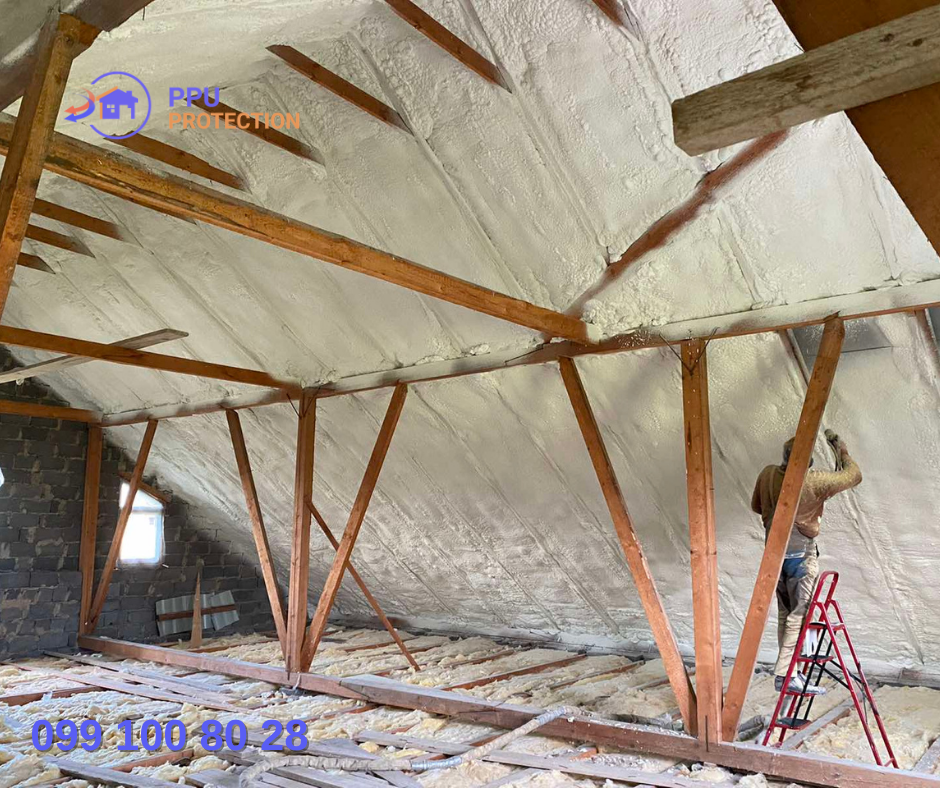 Утеплення пінополіуретаном – ефективна протидія виникненню грибка та цвілі на стелі.
